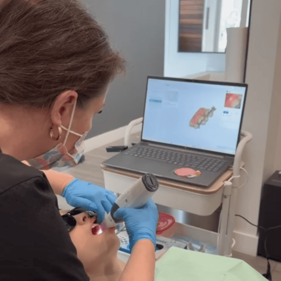 At Dental Line in Encino, we use a modern digital intraoral scanner instead of uncomfortable traditional impressions. A small handheld camera captures a precise 3D image of your teeth in minutes, making the visit faster and more comfortable. The scan helps Dr. Irena Starchenko detect issues early and design crowns, aligners, and restorations with high accuracy. Because the file is sent instantly to the lab, treatments often require fewer adjustments and visits. You can also view your teeth on screen in real time to better understand your oral health. The result is better-fitting dental work, less waiting, and a smoother experience.